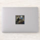 A black panther themed sticker. On the front is an illustration of a majestic black panther with fur like molten black and gold, laying on a cliff ledge bathed in ethereal moonlight. Intricate carvings adorn crumbling stone pillars, and bioluminescent flora casts a soft, otherworldly glow. The scene is rendered in a rich, textural oil painting style with thick, .