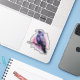 Vinheta de contorno com uma imagem de um corvo preto com asas roxas cor-de-rosa. Uma água cor-de-rosa por trás deste adorável pássaro místico.