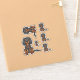 A ilustração original do desenho animado de Destei de um cão da raça Cavalier King Charles Spaniel, preto e cor-de-rosa, que está sentado. O design é colocado seis vezes na folha em diferentes tamanhos.