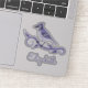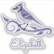 Um jay azul empoleirado em uma videira e um autocolante de nome personalizado.