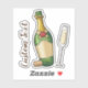 Frasco de vinho espumante aberto com vidro cheio. Cor de fundo personalizada. Texto personalizado.