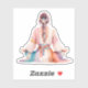 Erleben Sie die Harmonie und Gelassenheit des Boho-Lifestyles mit unserem einzigartigen Aufkleber, der eine meditative Frau in kunstvoller Aquarelltechnik darstellt. Die Illustration zeigt eine Frau von hinten, die auf dem Boden sitzt und in tiefer Meditation versunken ist. Ihr Haar ist mit wunderschönen Blumen und filigranem Haarschmuck geschmückt, was ihre natürliche Schönheit und die Verbundenheit mit der Natur unterstreicht.