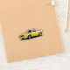 A chunky retro pickup coupe hybrid in bright yellow. cartoon style perfect for fans of automotive art.