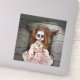 Boneca pálida cara pálida cara pálida pingando sangue manchas velhas de madeira caixa branca vestido Feliz Halloween LGBTQIA orgulho gay dá aparência artística tipo zombie macabra e desconcertante colar pérola tema do horror assombrando o medo negro
