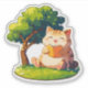 This adorable chubby cat reading a book under a tree brings cozy vibes and a love for literature. A perfect sticker for bookworms and cat lovers alike!