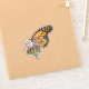 Este adesivo delicadamente detalhado apresenta uma borboleta monarca que repousa sobre uma flor de verbena. Desenhado à mão em linhas finas de tinta e pintado com lavagem de aquarela macia, esse design capta a graça e o encanto dos polinizadores em um cenário botânico. Apresentando a arte original de Carolyn A Pappas.