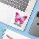 Este adesivo de vinilo contém um bonito gráfico de borboleta rosa e roxo, juntamente com um adesivo separado que tem texto personalizável.