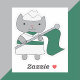 Você gosta de adesivos divertidos? Este adesivo tem uma cinza gira vestindo um uniforme de banda verde e branca marchando enquanto segura uma bandeira verde.