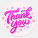 Expresse sua gratidão com estilo usando este adesivo de "Obrigado" rosa brilhante. Cercado por corações pastéis, é perfeito para selar envelopes, sacolas de presentes ou lembrancinhas de festa com um toque carinhoso.