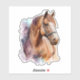 Contour sticker with an image of a brown horse head wearing a leather halter portrait. Beautiful majestic animal.