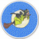 Adesivo Bruxa Segurando Chapéu Voando na Lua Passada em Ga