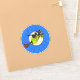 Este vinil tem uma bruxa segurando seu chapéu enquanto voa sobre uma vassoura sobre uma lua de cheio com seu gato preto andando de costas sobre um fundo azul com estrelas amarelas pequenas.