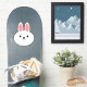 Bonita cabeça de coelho branco de desenho animado com orelhas grandes rosa e um rosto adorável.