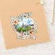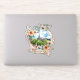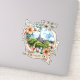 A panoramic illustration of Buzet, perched on a hill above the Mirna River valley, is framed by a rich floral border symbolizing Istria’s natural beauty and calm atmosphere. The decorative banner featuring the town’s name highlights its historical charm and romantic character. This design blends architecture, nature, and tradition into a decorative, souvenir-style illustration.