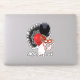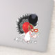 Adesivo de vinilo recortado com imagem de um ventilador de pena preta, um balão vermelho, um balão preto e uma máscara vermelha. Texto opcional. Veja o adesivo redondo correspondente, convite, envelope, confetti, bolsa de favor, caixa de favor, etiqueta de favor, sacos de presentes, etiqueta e papel de embalagem. Veja toda a coleção do Cancan Sticker nos CONVITES | Seção Stickers & Labels