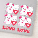 Um cachorrinho branco giro e um gatinho branco adorável seguram uma namorados neste conjunto de adesivos. Há quatro dos autocolantes por folha, mais duas palavras "AMOR" vermelho vivo que combinam. *Obrigados para Design de Gráficos Bonito para as imagens usadas neste design.