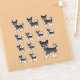 A ilustração original do desenho animado de Destei de um cão da raça casaco Chihuahua, preto e suave. O design é colocado 12 vezes na folha em três tamanhos diferentes. Há um cão maior, três cães de tamanho médio e oito cães de tamanho pequeno.