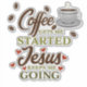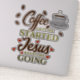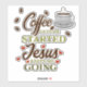 Adesivo "Café Me Começa, Jesus Me Mantém Indo"