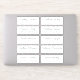 Fácil de personalizar, nomes e endereços / etiquetas de endereço de casamento individuais para convidados. Essas etiquetas chic, modernas de endereços de casamento preto e branco mostram seus nomes de convidados de casamento em uma caligrafia elegante e escrivaninha. Basta adicionar os nomes e endereços dos convidados do casamento. Desenvolvido exclusivamente para você pelo Happy Dolphin Studio. ***POR FAVOR, NÃO SOLICITE UMA FOLHA MAIS INFERIOR A 6 POLEGADAS!!** 8" X 8" (2 X 5 ETIQUETAS) TAMANHO DE ETIQUETAS INDIVIDUAIS: 1,35" X 3,64" FOLHA DE 6" (2 X 5 ETIQUETAS) TAMANHO INDIVIDUAL 1,09" X 2,86"