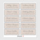 Fácil de personalizar, nomes e endereços / etiquetas de endereço de casamento individuais para convidados. Essas etiquetas chic, modernas e simples de endereços de casamento mostram seus nomes de convidados de casamento em uma caligrafia elegante e escrivaninha em um fundo púrpura de pêssego de amêndoa. Basta adicionar os nomes e endereços dos convidados do casamento. Desenvolvido exclusivamente para você pelo Happy Dolphin Studio. ***POR FAVOR, NÃO SOLICITE UMA FOLHA MAIS INFERIOR A 6 POLEGADAS!!** 8" X 8" (2 X 5 ETIQUETAS) TAMANHO DE ETIQUETAS INDIVIDUAIS: 1,35" X 3,64" FOLHA DE 6" (2 X 5 ETIQUETAS) TAMANHO INDIVIDUAL 1,09" X 2,86"