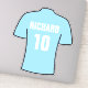 Vinheta de futebol. Camisa de futebol design em azul-claro. Personalizado com sua escolha de nome e número. adesivo do laptop. 8 x 8 polegadas.