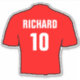 Vinheta de futebol. Camisa de futebol design em vermelho. Personalizado com sua escolha de nome e número.