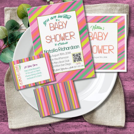 Modern Colorful Pink Stripe Baby ShowerCriado por Alex G