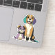 Este design de adesivo apresenta dois cães coloridos, felizes e amigáveis. Este é um design excelente para donos de cães e amantes de cães.