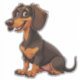 Trabalho de arte de desenho animado dachshund mostrando cores brilhantes e um comportamento adorável, perfeito para designs que precisam de um toque canino animado trazendo alegria e charme.