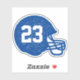 Os fãs e jogadores de futebol apreciarão esta simples silhueta de capacete com uma textura angustiada e uma área de texto personalizada onde você pode colocar um número, ano, equipe ou inicial pessoal. Faça você... faça-o seu! As cores azul e branca clássicas são perfeitas para muitos grupos, mas outras combinações de cores estão disponíveis. Este adesivo personalizado de capacete de futebol é excelente para atletas segundos graus e também para a escola secundária, juventude e muito mais!