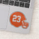 Os fãs e jogadores de futebol apreciarão esta simples silhueta de capacete com uma textura angustiada e uma área de texto personalizada onde você pode colocar um número, ano, equipe ou inicial pessoal. Faça você... faça-o seu! As cores laranja e branca brilhantes são perfeitas para muitas equipes, mas outras combinações de cores estão disponíveis. Este adesivo de capacete de futebol é excelente para atletas segundos graus e também para o ensino médio, jovens e muito mais! Faz um excelente de estocagem de adolescente!