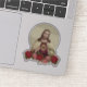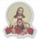 Este belo adesivo de contorno apresenta uma imagem católica tradicional do Coração Sagrado de Jesus, Jesus Sagrado, com rosas vermelhas e rosa vintage abaixo.