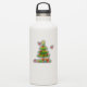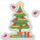Desenho com um grupo de cardiais vermelhos voando em uma árvore de Natal para passar o Natal juntos. Debaixo da árvore há muitos presentes coloridos. Qual presente você gosta?