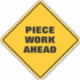 Sinais de cautela de diamante amarelo engraçado avisam sobre o trabalho em frente em uma espessa fonte de serifa negra. Perfeito para alguém que trabalha em uma linha de produção ou que faz um trabalho repetitivo.