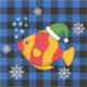 Uma ilustração de um peixe de laranja amarelo tropical, de natal, sob o oceano, com bolhas sobre um fundo de búfalos preto azul com verificação de padrão. Este design de desenho bonitinho é uma ideia de presente para amantes do Natal, amantes da pesca e amantes do ronco.