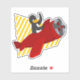 Vinyl Sticker com design com ilustração de um pinguim que voa num plano vermelho; ilustrada por Radka Kavalcova/MaxiHarmony