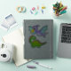 Duas ilustrações de desenho animado de dinossauro. Verde e roxo.