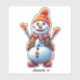 O boneco de neve alegre com nariz de cenoura, um chapéu laranja jaulado, e um cachecol.