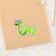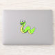 Este vinil adesivo é um cobra de desenho animado que é verde-néon e amarelo-claro com grandes olhos brancos e sorrindo.