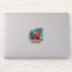 Esta animação de caranguejo eremita feliz é um roxo brilhante e colorido e laranja com fundo azul. Leva-me ao mar!