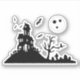 Uma casa assombrada e sinistra fica no topo de uma colina sob um céu enluarado. Este design é para decorações de Halloween!