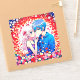 Rapaz de anime e garota se abraçando cercado por flores coloridas. Casal de anime bonito, menina de cabelo rosa e menino de cabelo azul. Bonita para o Dia de os namorados, uma viagem ou qualquer ocasião romântica.