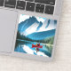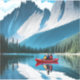 Arte IA retratando uma cena serena com um caiaque casal em um lago na neve coberto de montanhas.
