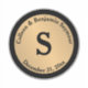 Personalize esta bolinhas dourada no adesivo preto com duas linhas de texto personalizável e um monograma em negrito.