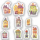 Folha adesiva de casas bonitas e brancas. Você pode adicionar texto.