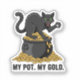 Keep your hands off the loot! This funny sticker features a possessive cat guarding its pot of gold. The perfect depiction of feline greed and St. Patrick's Day treasure. A great gift for cat owners who know who really runs the house.