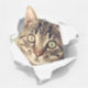 Um rosto bonito de gato aparecendo através de um pedaço de papel rasgado. Divertido como um adesivo para qualquer item grande.