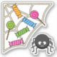 Esta é uma ilustração de uma aranha fofinha, mas assustadora, que pega doces coloridos e pirulitos em sua teia. Este design de desenho animado é uma melhor ideia de presente para crianças e adultos que amam o Halloween.