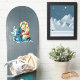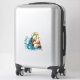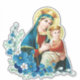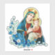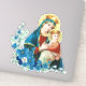 Este belo adesivo apresenta uma imagem católica tradicional da Virgem Bêntea Mary com o Bebê Jesus com flores azuis.