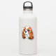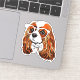 Este design apresenta um retrato de um rei cavaleiro Charles Spaniel vestindo óculos e uma gravata arco em um fundo rosa.